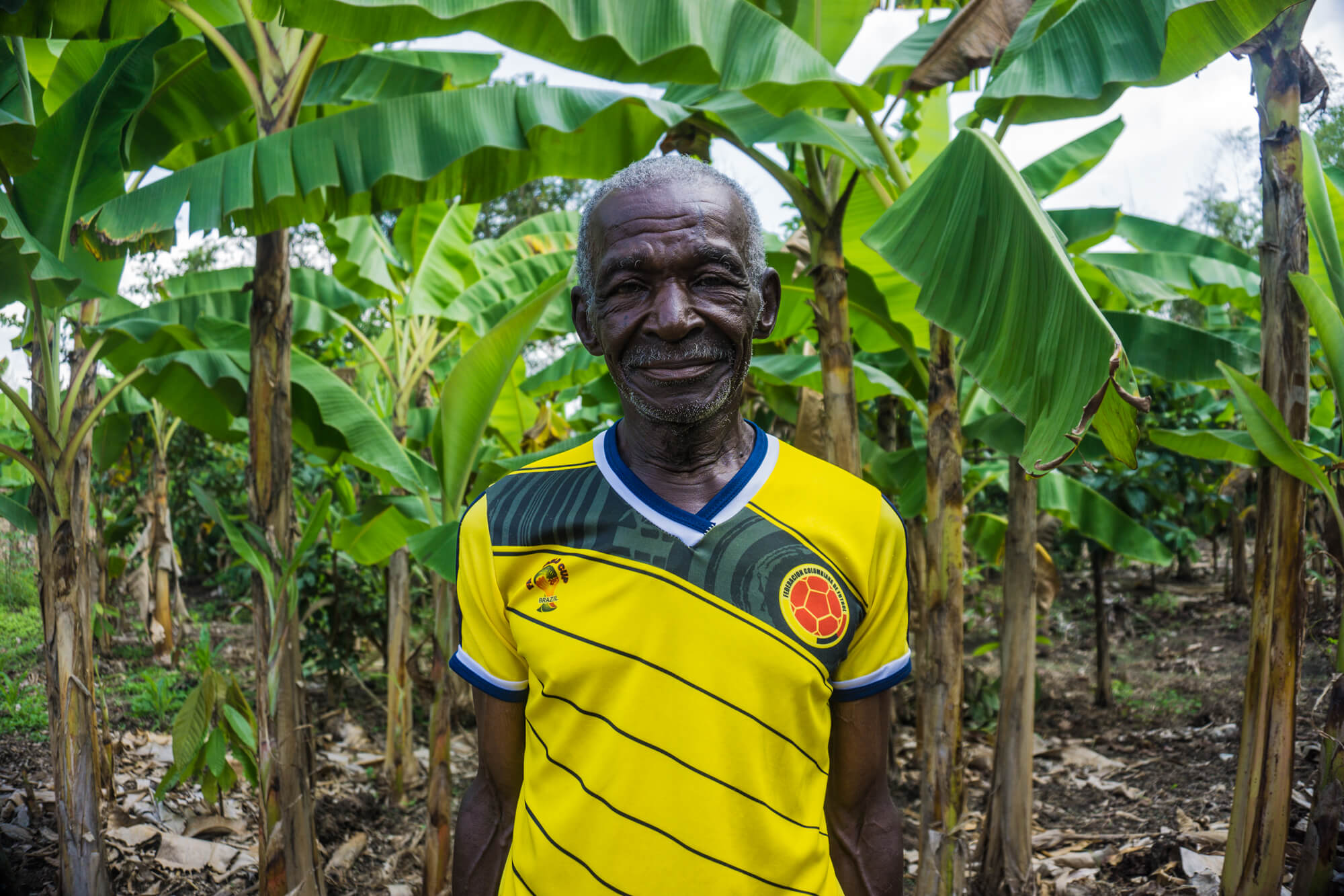 Luis Zapata, su abuelo, recuerda que su nieto salía de clases y se ponía a jugar detrás de la casa. Aquí don Luis posa encima de lo que fue la casa de Cristian, un lugar que hoy ocupan una docena de palmeras. FOTO / SANTIAGO RAMÍREZ B.