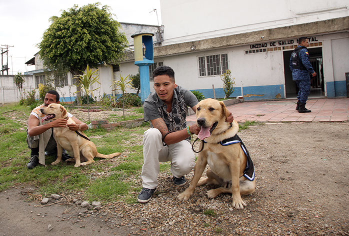 Gracias a la terapia canina los internos que antes difícilmente salían de su encierro y tenían problemas de convivencia han mejorado su motricidad y su relación con los demás.