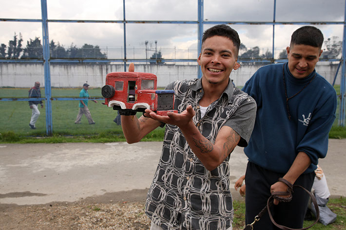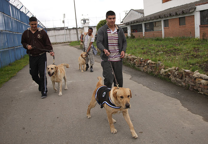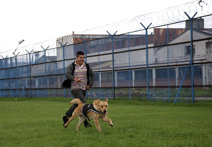 Todos los lunes por la mañana a los internos de la unidad de salud mental de la cárcel La Modelo de Bogotá se les olvida que están ahí. Sí, las rejas los siguen separando del mundo y los guardias no descuidan la mirada, pero ellos se sienten libres. Es hora de la terapia canina y por eso tienen permiso de salir de la vieja construcción donde funciona la unidad para correr con los perros en la cancha de fútbol que da justo en frente. Son pocos minutos, suficientes para romper con la rutina, pero una vez los perros se marchan el encierro vuelve a ser insoportable.