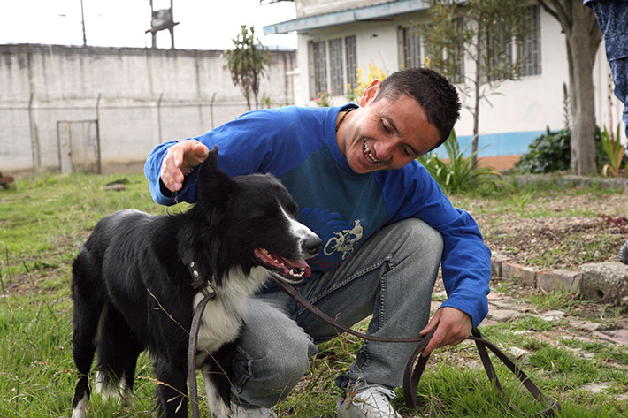 El simple contacto con los animales disminuye los niveles de estrés y ansiedad de los internos. Los guardias siempre llevan cuatro perros y para que todos puedan jugar con ellos, deben dividir la sesión en varios turnos.
