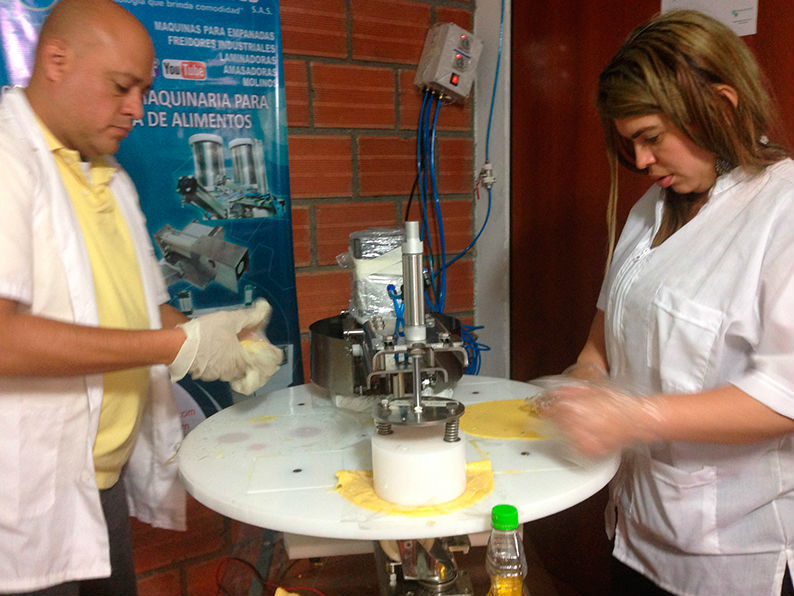 Dos colombianos crearon una máquina que puede hacer entre 300 y 2.000 empanadas por hora.