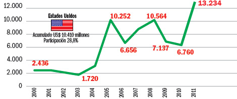 EL SOCIO: Estados Unidos es el principal destino de las exportaciones colombianas, con 43 por ciento de participación. En el año 2011, las exportaciones destinadas a Estados Unidos registraron un aumento de 29,6%, mientras que las importaciones repuntaron 29,7%.