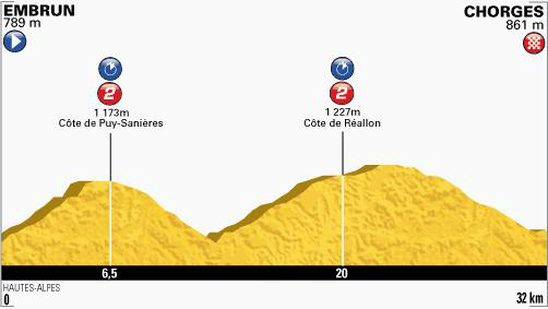 Con el lago de Serre-Ponçon como telón de fondo, se corre la contrarreloj con dos pequeñas cotas: Puy Sanieres y Réallon.