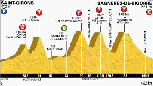 Saint Girons a Bagnères de Bigorre 168,5 Km.