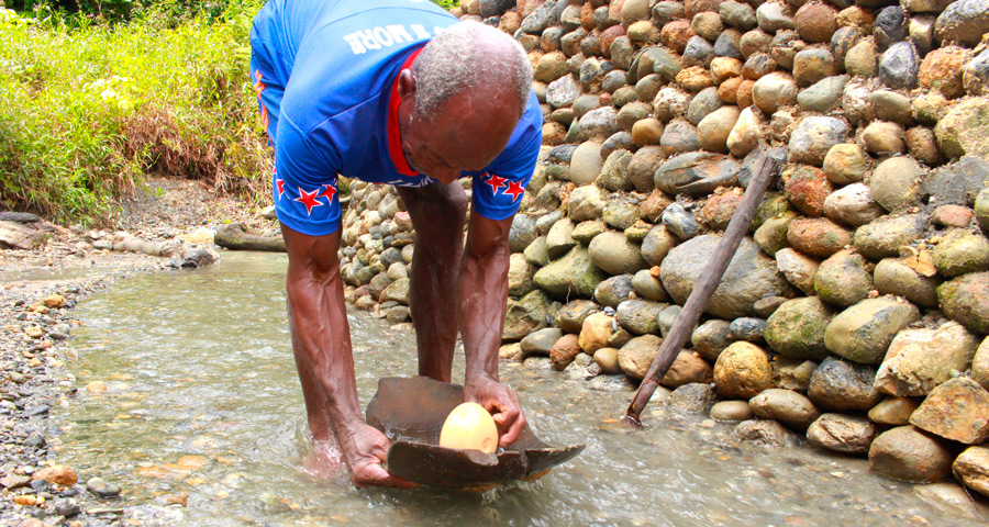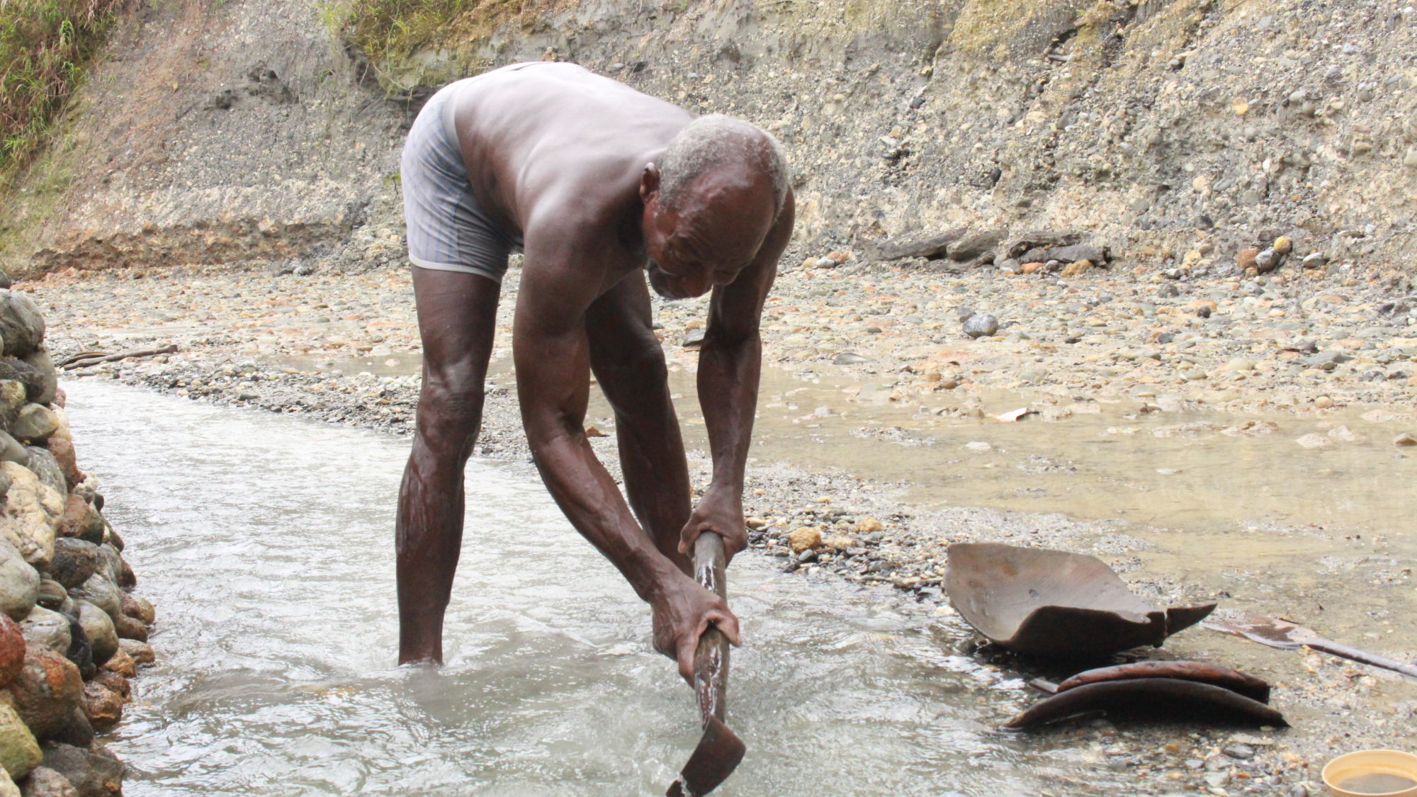Aunque parezca sorprendente que alguien beba su propio orine cuando tiene sed, don Leonidas lo hace seguidamente y lo reconoce sin interrumpir lo que está haciendo. Su trabajo le ha enseñado a naturalizar las condiciones adversas de una labor en la que su cuerpo y la tierra se funden como funde el joyero al oro.