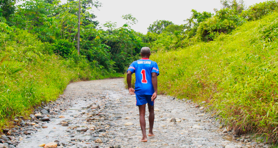 Son cincuenta minutos los que se demora caminando de su casa a la mina, siempre lo hace, aunque a veces, en el trayecto encuentra a un mototaxista que le ofrece un ‘chompi’, es decir, llevarlo hasta su trabajo en un ´chocho´, el transporte más usado en Condoto, una especie de carro con tres llantas que simula la imagen de un ratón y tiene espacio para tres pasajeros.